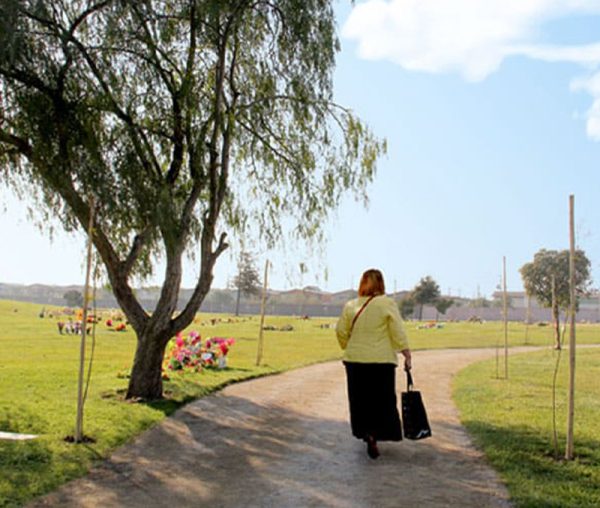 Colocar arreglos florales dentro del límite de la lápida.