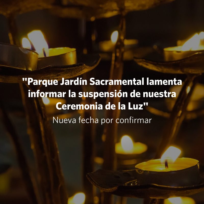 En Jardín Sacramental estamos preocupados siempre de acercarlos a sus seres queridos. Es por ello, que lamentamos profundamente informar que por motivos de fuerza mayor hemos tomado la decisión de suspender nuestra Ceremonia de la Luz, propuesta para este 18 de diciembre a las 19:00 horas. Para nuestros clientes que alcanzaron a participar enviándonos la fotografía de su ser querido queremos...Leer más